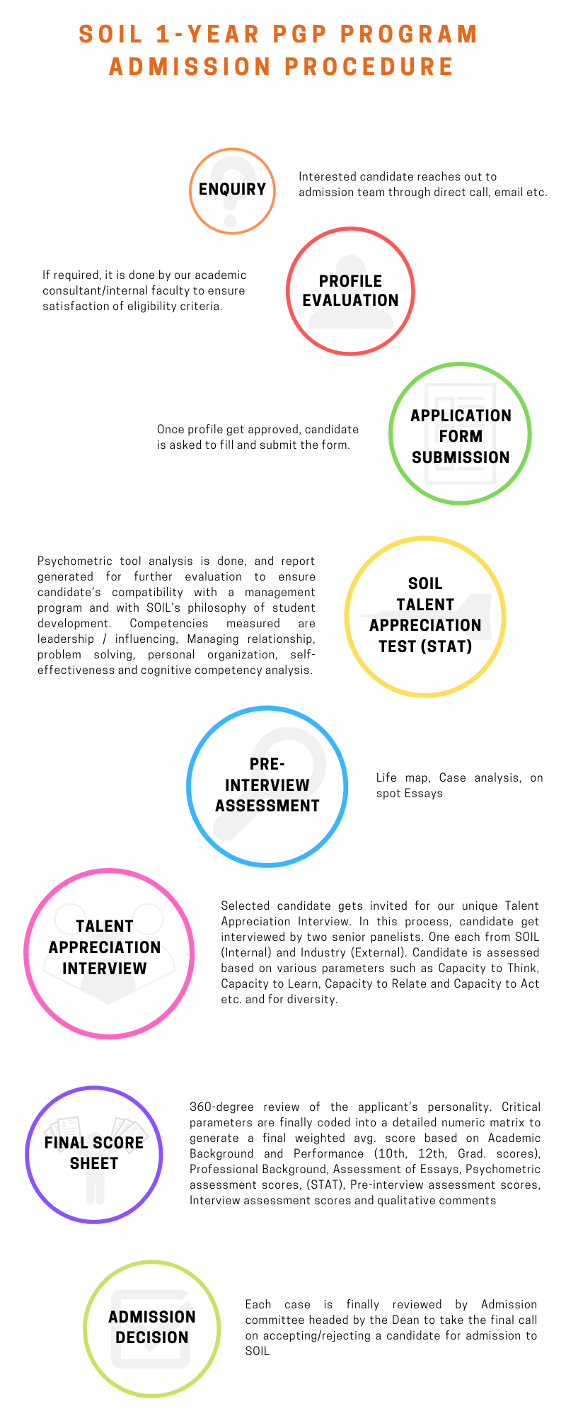 Thus, the admission process has multiple stages and assessments, as depicted in the visual flowchart below: