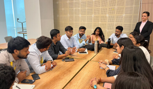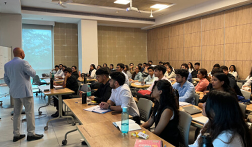 Structured classroom teaching through real-world case discussions Faculty use cases from Harvard Business School and other global B-schools to lead Socratic-style discussions. These structured debates around real business challenges help students develop strategic thinking and analytical depth.